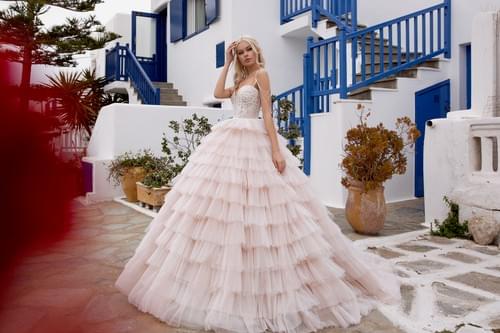 Lanesta Ambrosia 婚紗是一款浪漫的公主式禮服,採用柔和的粉膚色或裸色調設計。