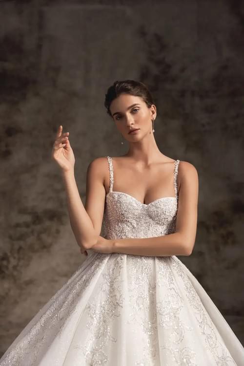 採用精緻蕾絲和刺繡裝飾,配以大體積的裙身。