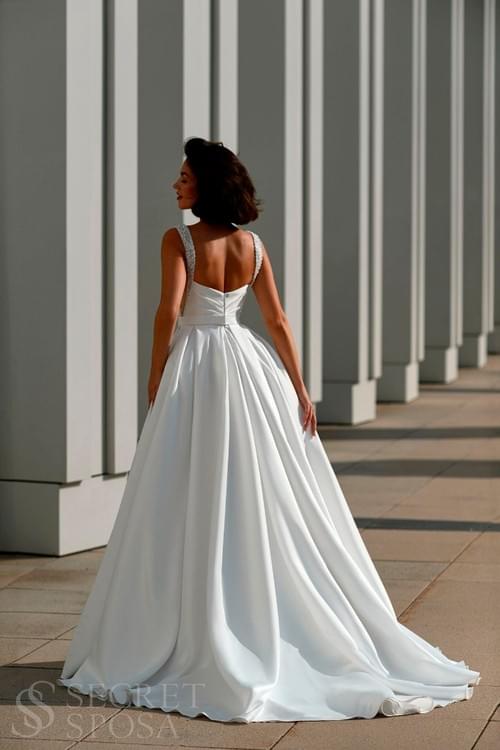Secret Sposa 品牌的 Ferula採用極簡 A 字形輪廓,由緞面材質製成,具有柔滑光澤。