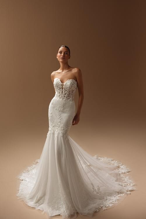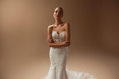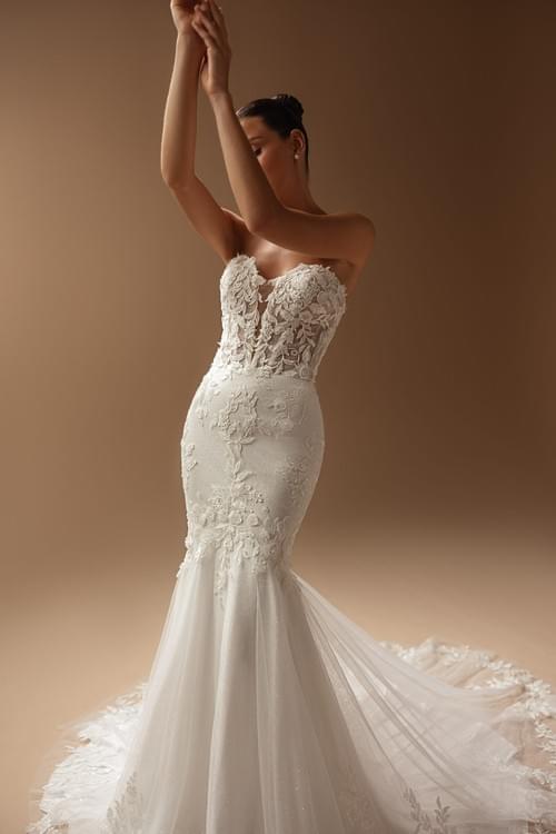 採用無肩帶美人魚/魚尾設計,勾勒出曼妙身姿。