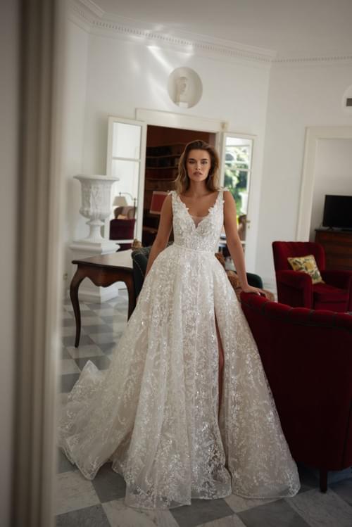 這款 Lanesta Majestic 婚紗是波蘭品牌 Lanesta 的代表作之一,設計核心在於「一裙兩穿」的靈活性與極致的浪漫細節: