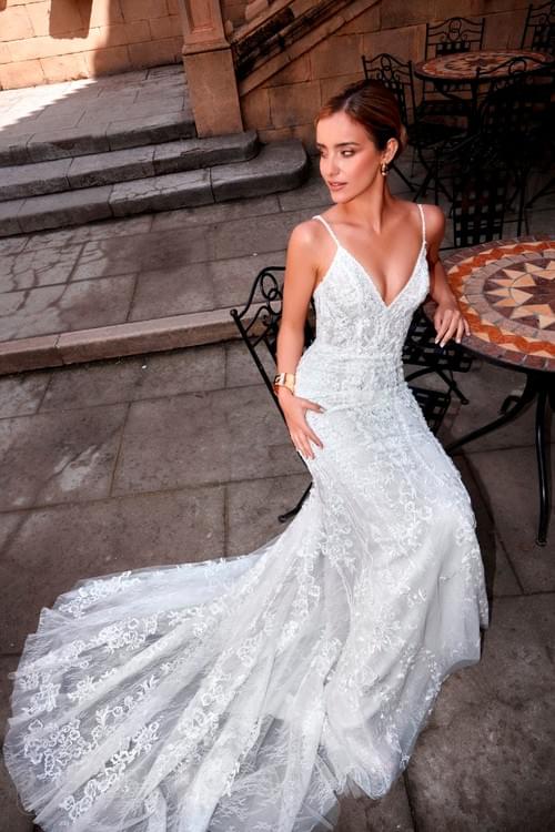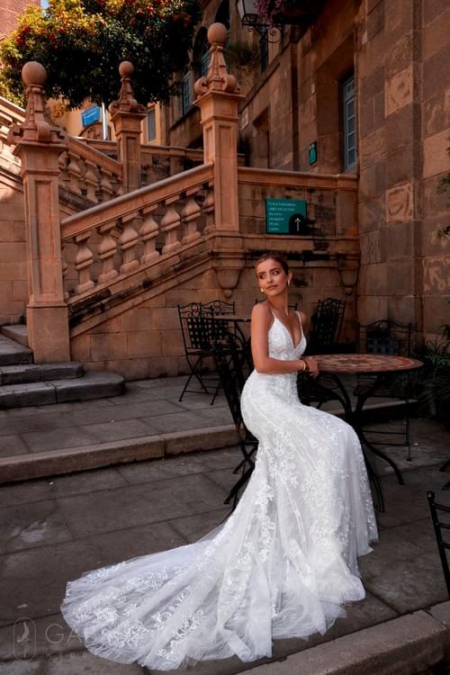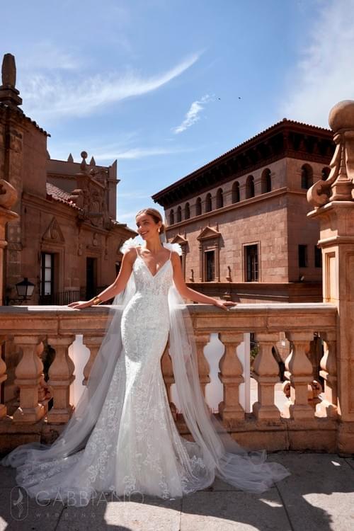 Gabbiano Oyshen 婚紗(也被稱為 Ocean )是 Gabbiano 品牌設計的美人魚輪廓婚紗。這款禮服屬於他們的 "Flowers of Dawn" 系列,採用優雅的歐洲蕾絲、絲綢和緞面材料製成,並飾有珠母貝珍珠和閃亮玻璃珠寶。