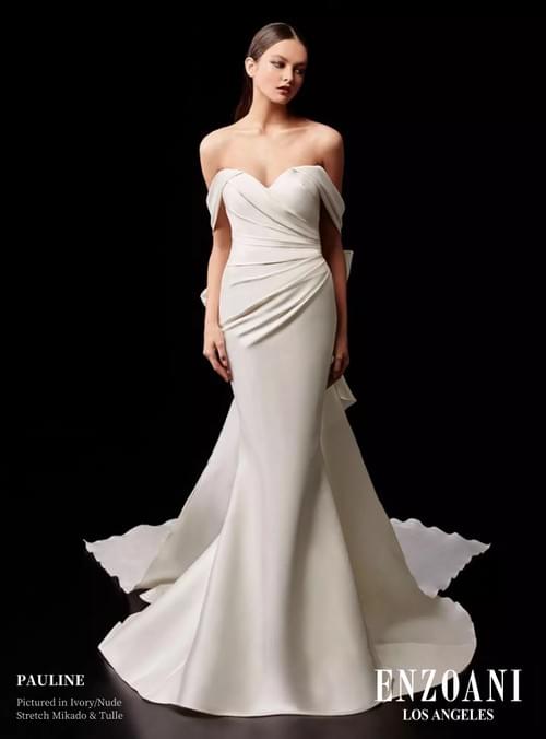 美人魚/喇叭形輪廓,配有浪漫的甜心領口和精緻的腰部褶皺。