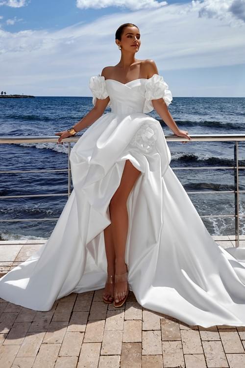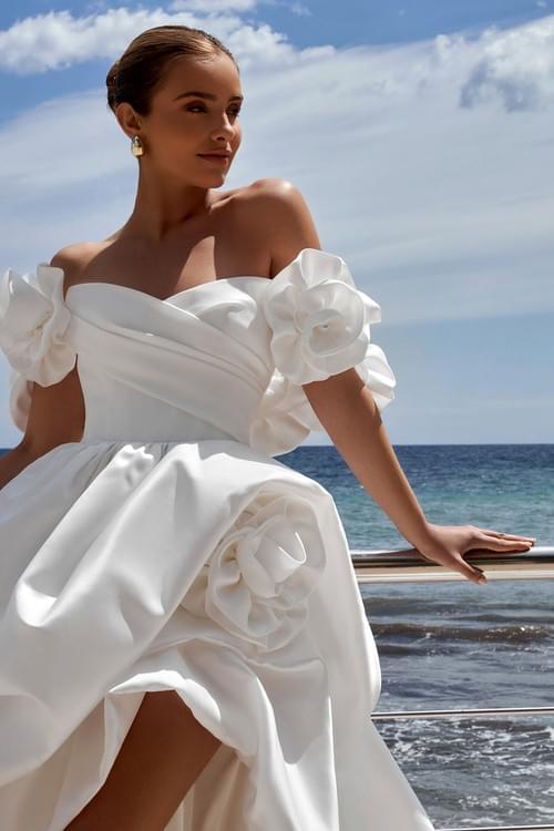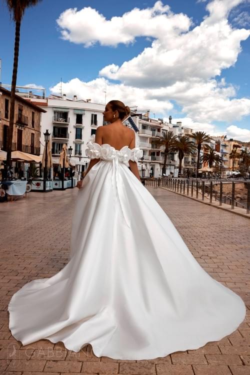 來自 Secret Sposa "Flowers of Dawn" 系列的 Skilar 婚紗,完美融合了現代簡約與宮廷華麗。